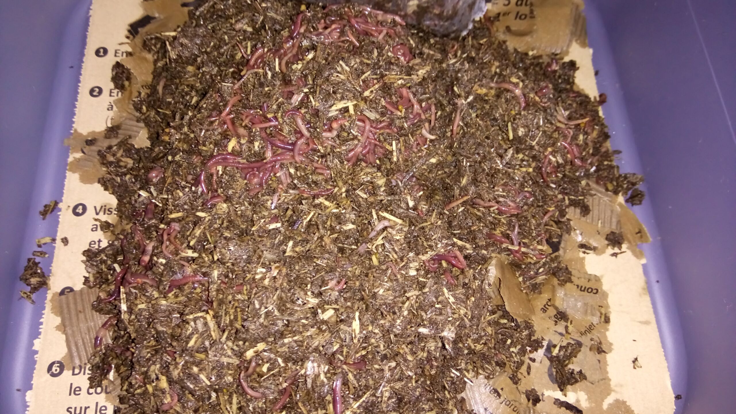 Vers la Terre m’a aussi envoyé des lombrics, qui semblent apprécier leurs première minutes dans le premier plateau  😉