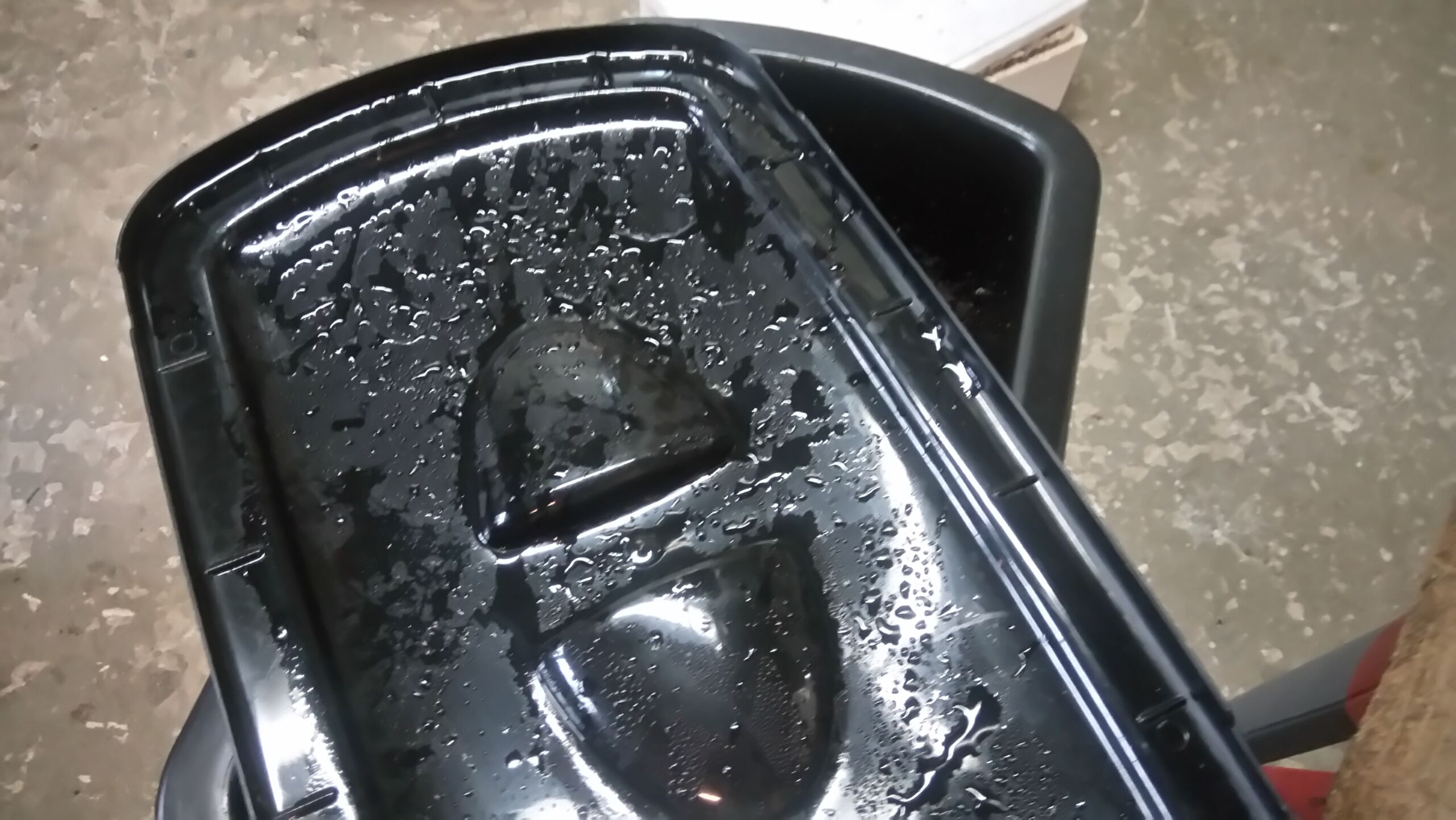 Je reviens sur le tapis en fibres de coco, fourni dans ma commande. Je ne sais plus pour quelle raison j’ai omis de le placer au-dessus des vers et des déchets à composter. Toujours est-il que de la condensation est apparue sur le couvercle. De l’humidité est également apparue sur les rebords du plateau supérieur. Par conséquent, ne faites pas la même erreur que moi et placez bien ce matelas pour éviter ce désagrément.